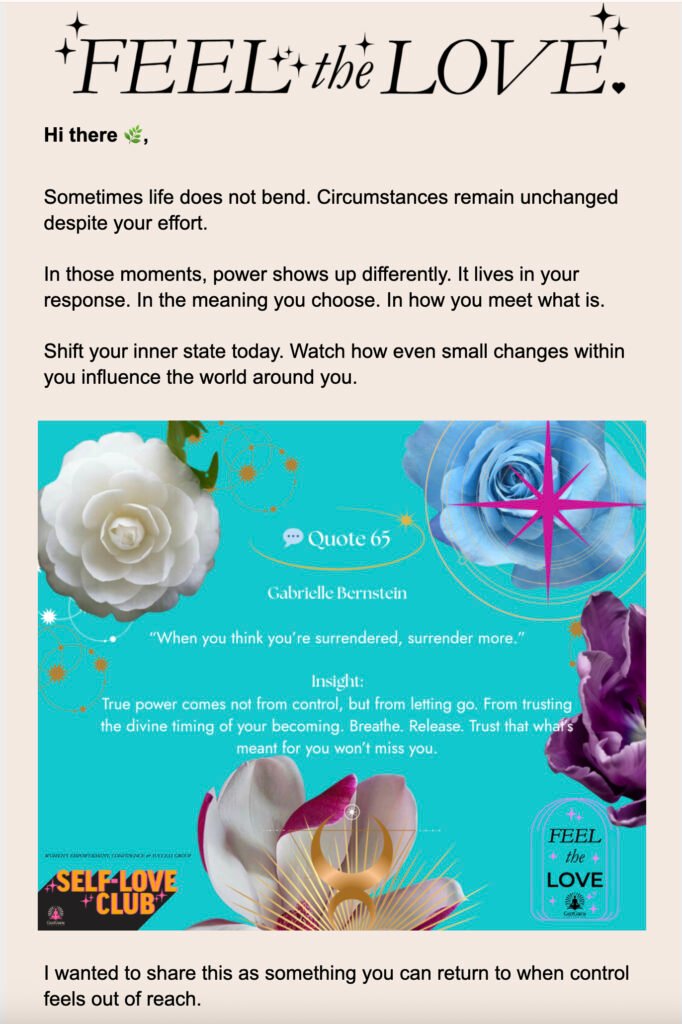 If you want more of Nikki’s wisdom and words, there are several ways to dive into her world. Check out the monthly Blog for more long-form content, or sign up to her email list for daily inspiration, which will hit your Inbox each morning. Click the buttons, and we’ll give you more of the good stuff.
